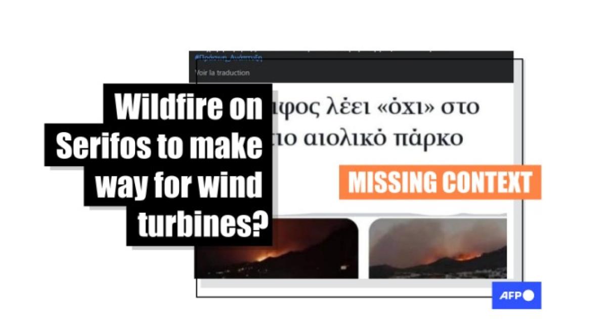 In Greece, both the development of wind farms and wildfires are regular topics of disinformation on social networks. AFP has debunked related misleading claims before, for example here and here.