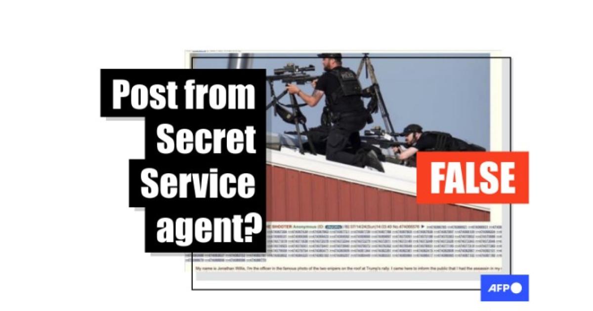 "My name is Jonathan Willis, I'm the officer in the famous photo of the two snipers on the roof at Trump's rally," says a 4chan post shared across Facebook, Instagram, Threads, X and other platforms -- including in German and Spanish.