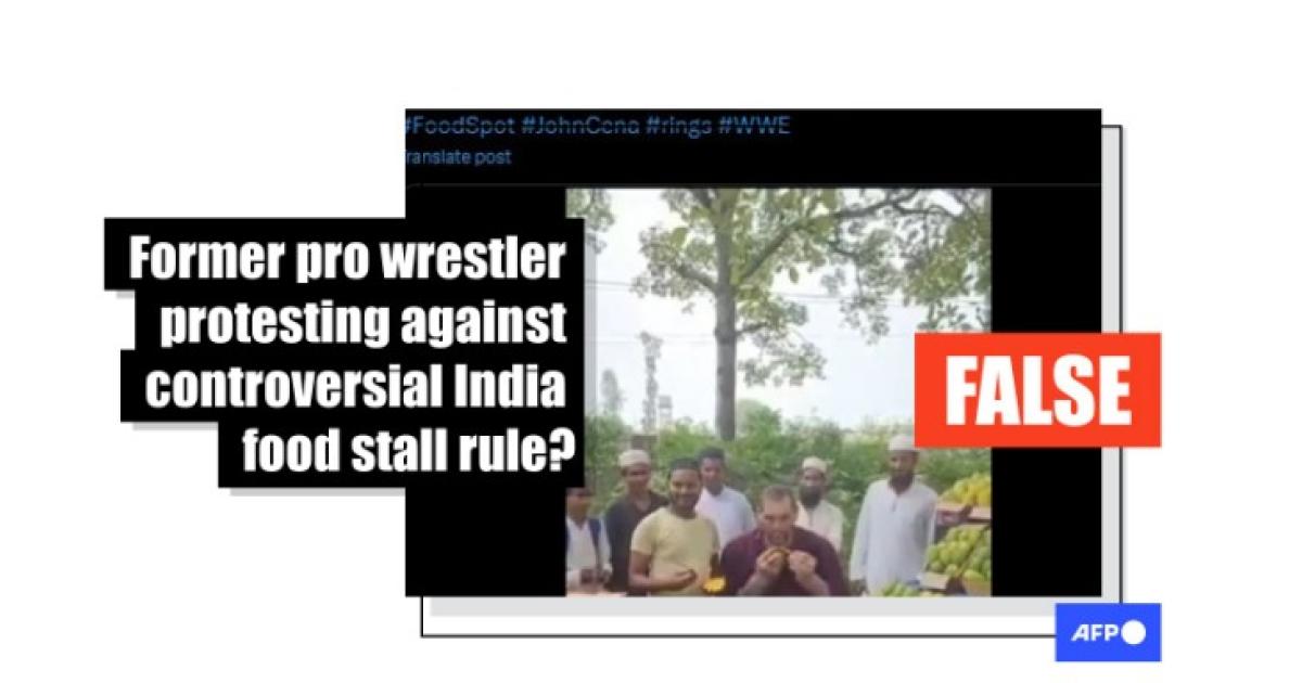 Unrelated clip falsely shared as ex-pro wrestler 'protesting India food stall order'