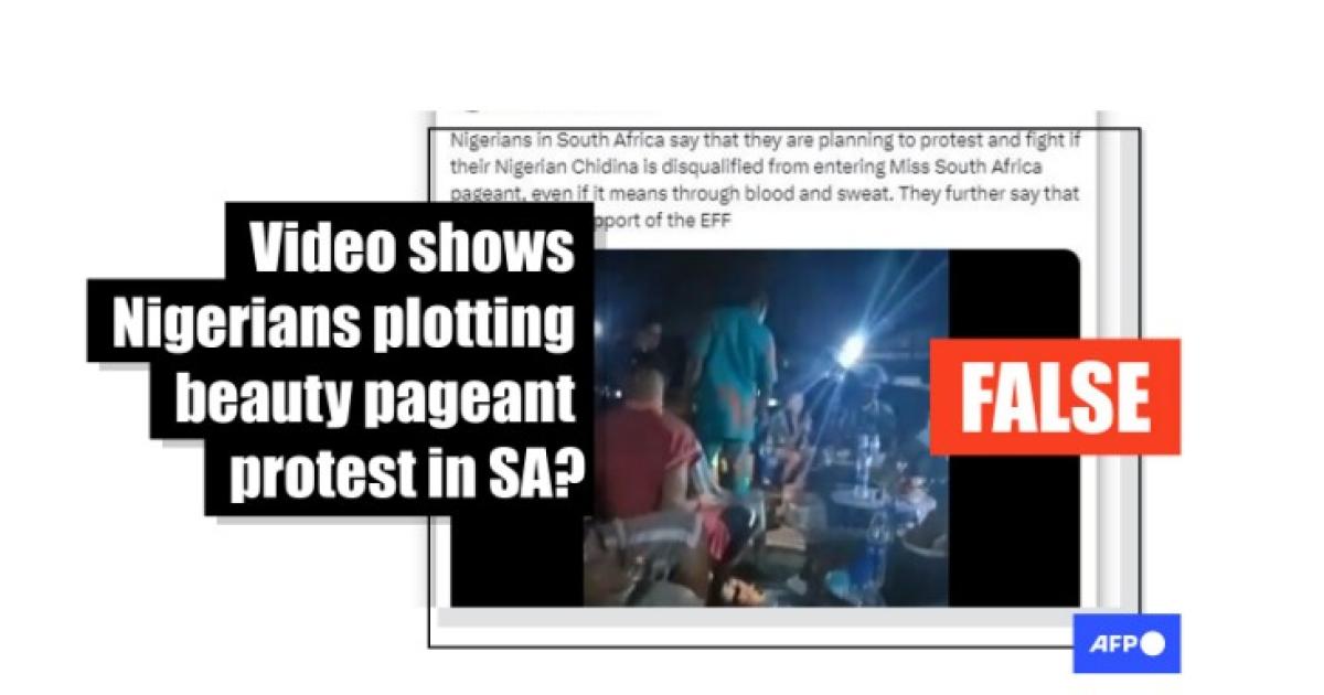 Footage does not show Nigerians planning protest in support of Miss SA contestant