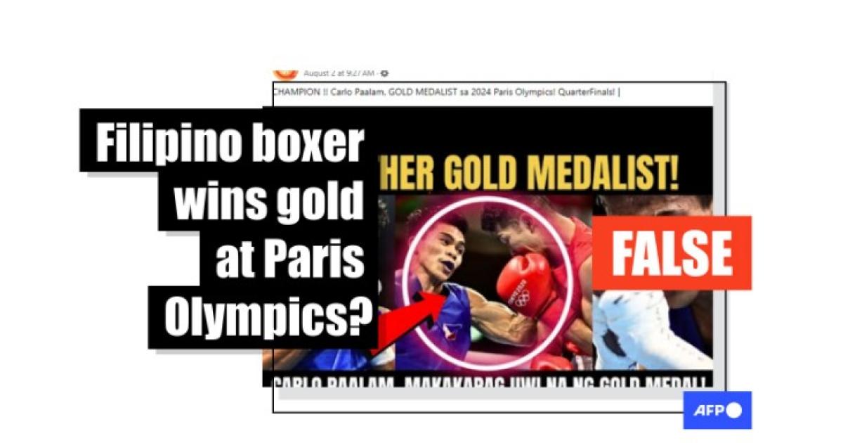 Filipino boxer Carlo Paalam did not win a medal at the 2024 Paris Olympics, contrary to claims shared hundreds of times on social media that he had secured the gold. Paalam was looking to go one better than the silver he took home from Tokyo, but was beaten by Australia's Charlie Senior in the quarter-finals of the men's featherweight category.