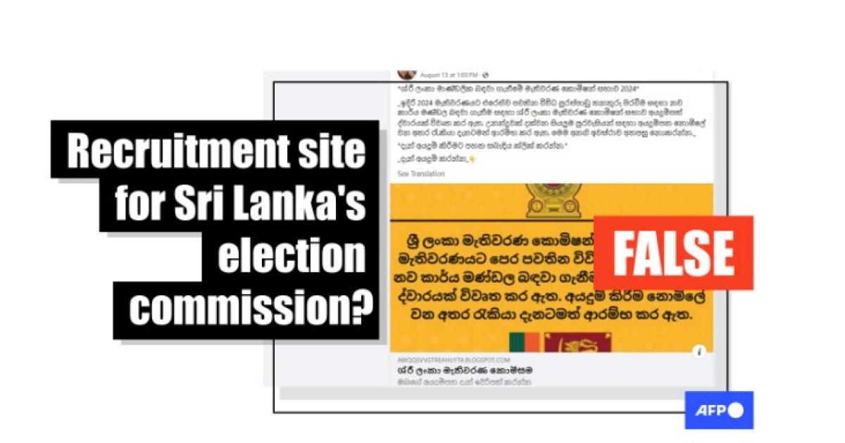 Saman Sri Ratnayake, commissioner general of elections at the Elections Commission, confirmed to AFP that the supposed recruitment drive is a fake.