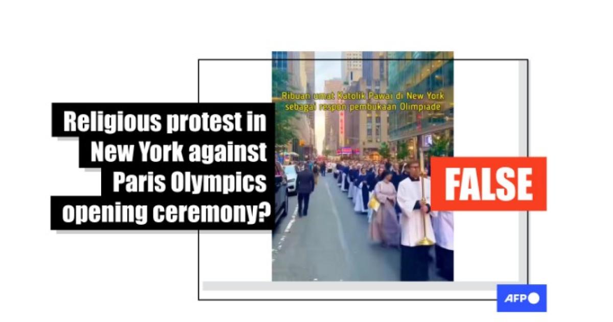 "Thousands of Christians and Catholics took to the streets in New York City and prayed together in France as a response to the 'ritual' of the French Olympics opening, which is considered offensive to Jesus and Christian symbols," read the Indonesian-language text in a video compilation shared on Facebook on July 29.
