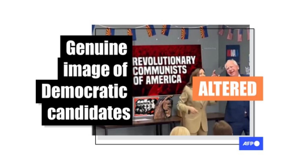 But the image of Harris and Walz posing in front of the Revolutionary Communists sign is digitally manipulated.