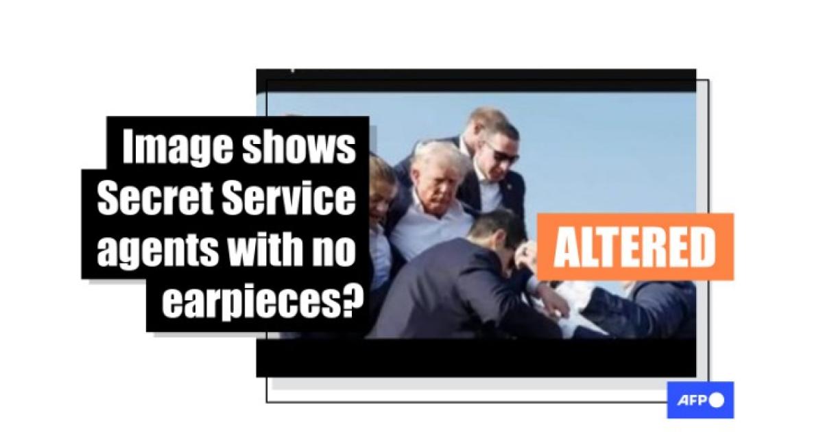 But the picture purporting to show Trump's security detail without earpieces appears to be altered.
