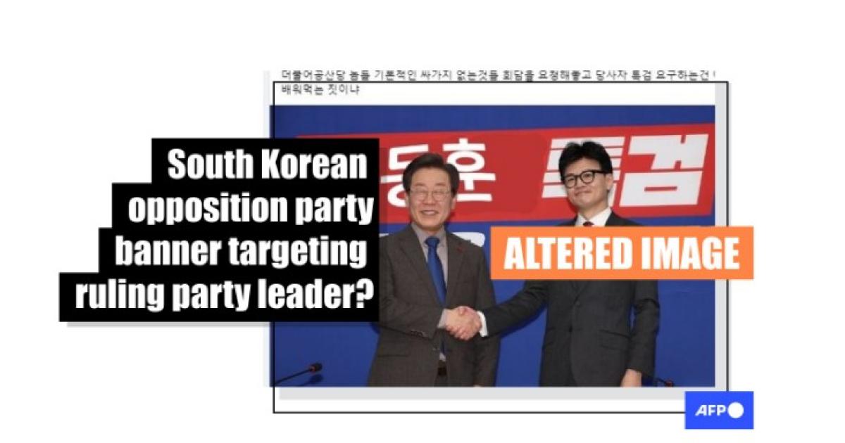 South Korea ruling party chief targeted by doctored 'probe banner' photo