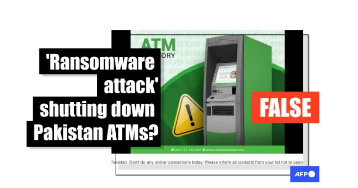"ATM's will be close (sic) for next 2-3 days probably, due to ransomeware (sic) cyber-attack within Pakistan. Don't do any online transactions today," read part of a Facebook post shared on August 18, 2024.