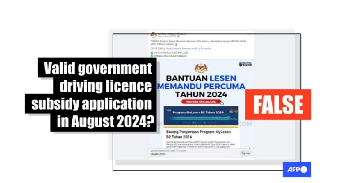 "LATEST! New Free Driving License Assistance 2024 updated with an EASIER PASS PROCESS!!" read a Malay-language Facebook post on August 8, 2024.