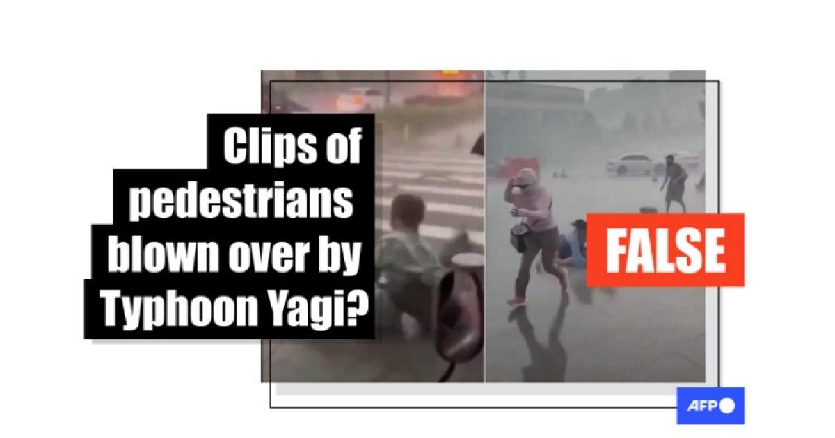 Old footage of gusts blowing over pedestrians falsely linked to arrival of Typhoon Yagi