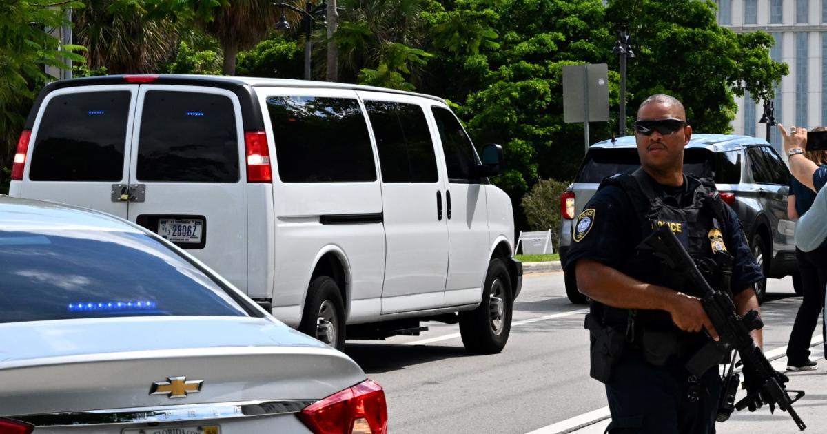 AFP photos of the US courthouse in West Palm Beach show officers with the Department of Homeland Security, which investigates terrorism and other federal crimes, guarding Routh as he left the building September 16 (archived here).