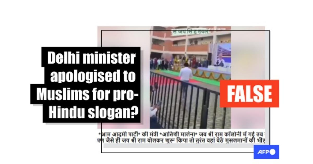But Atishi was in fact apologising to the crowd for neglecting to mention the name of the neighbourhood where a school she was inaugurating was located. She did not chant "Jai Shri Ram" during the event in March.