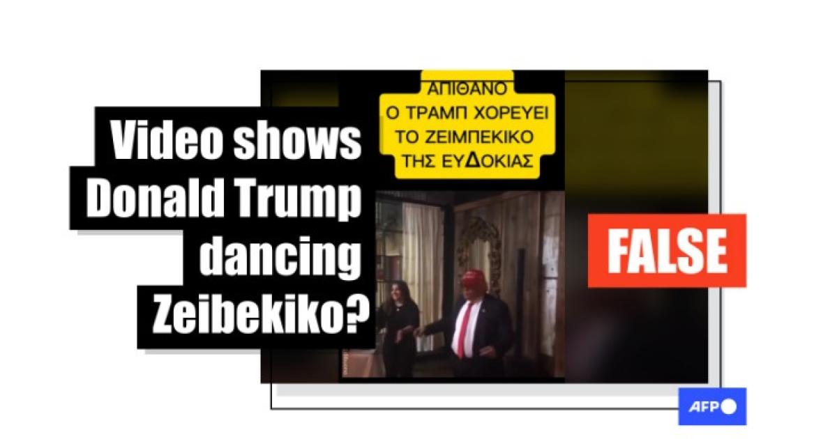 The video was previously shared more than 900 times in a viral TikTok post on June 20, 2024. "UNLIKELY TRUMP DANCES EUDOCIA'S ZEIBEKIKO DANCE", reads a caption on the video. Similar claims, including the video or screenshots, were shared on TikTok (here), X (here) and this Greek website.