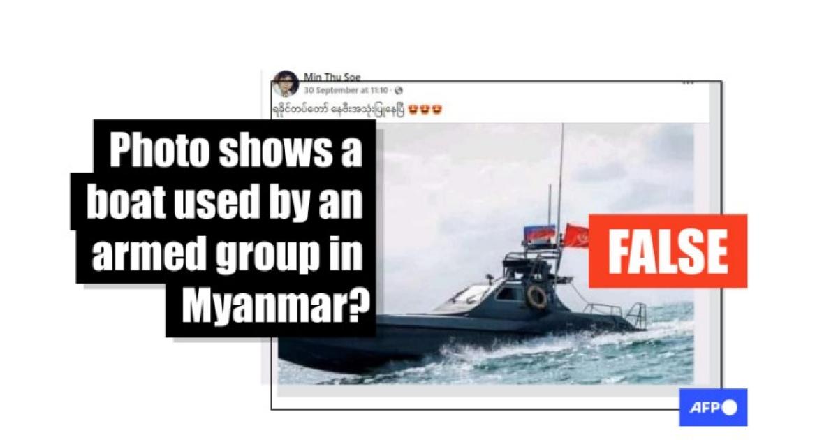 The post, which has been shared more than 800 times, shows a speedboat bearing the flags of the Arakan Army and its political wing -- the United League of Arakan (archived links here and here).