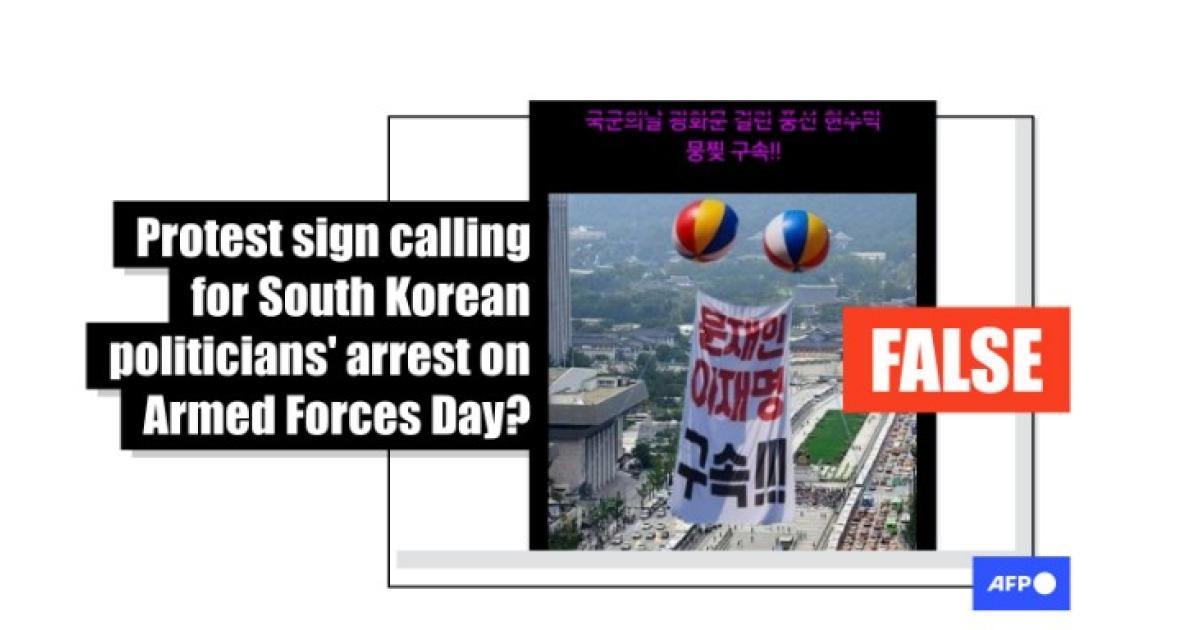 Doctored image circulates in posts about 'protest sign demanding South Korean politicians' arrest'