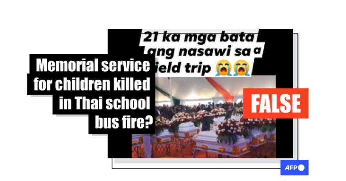 It circulated online after a devastating fire on a Thai school bus killed at least 23 people, police said (archived link).