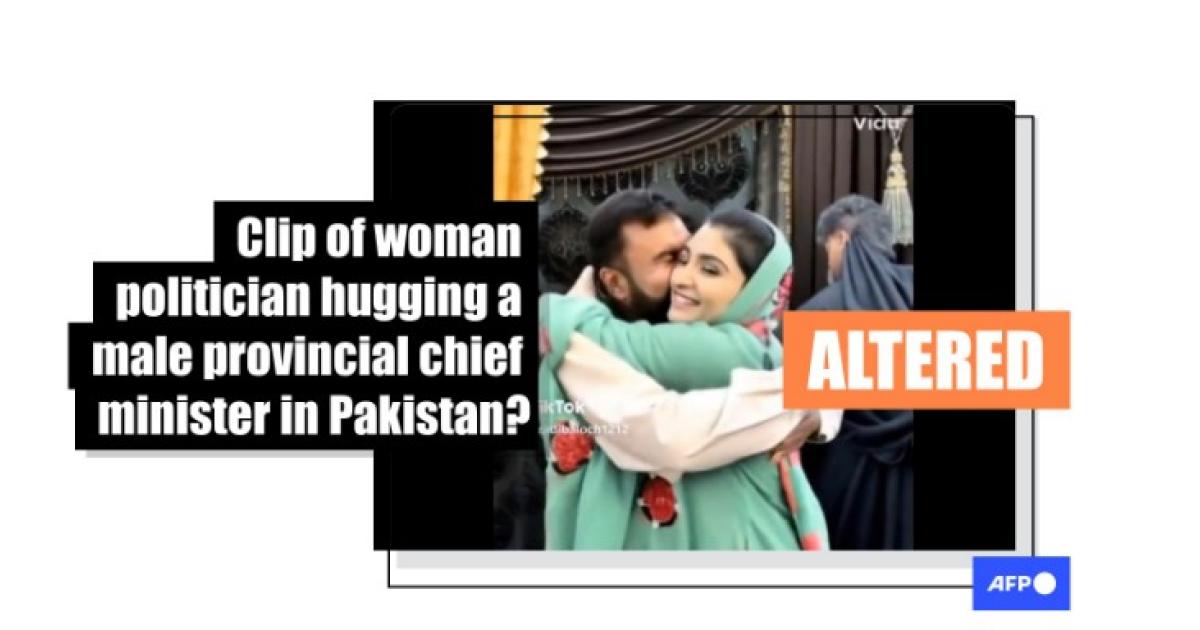 The short clip appears to show Meena Majeed, a member of the Balochistan provincial assembly, in a green shalwar kameez hugging Sarfraz Bugti, the province's chief minister. Both are members of the Pakistan People's Party.