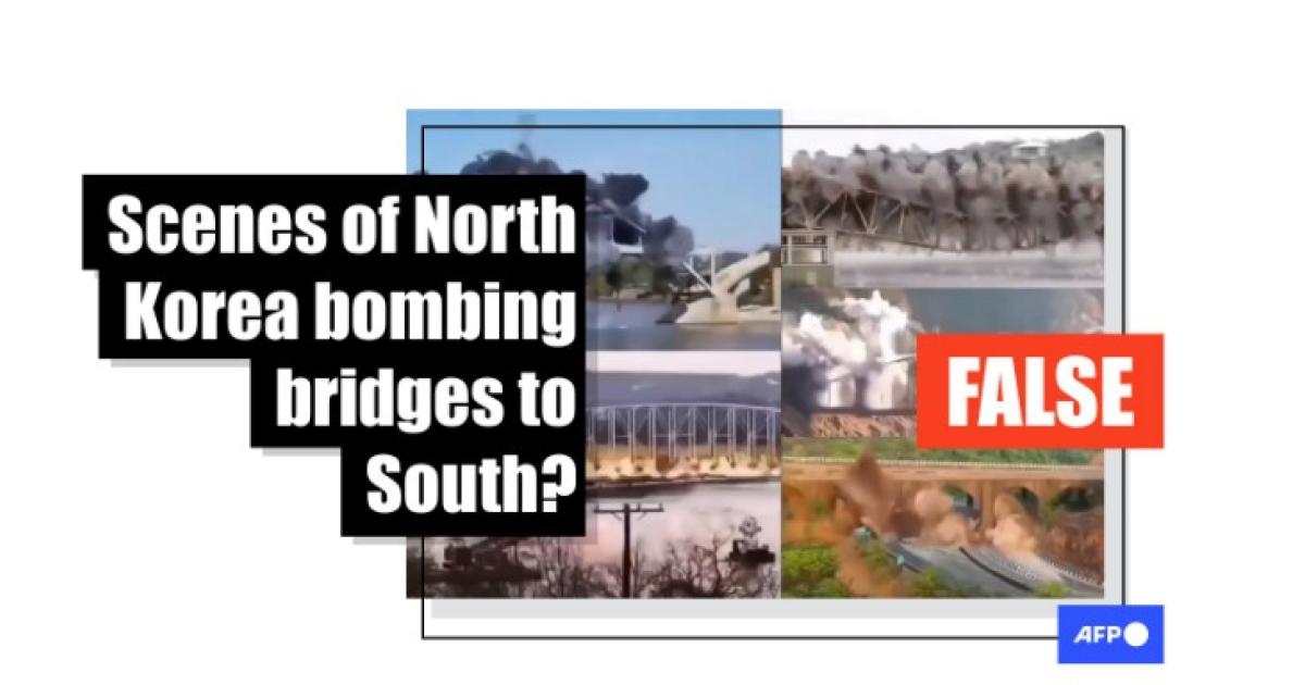 Unrelated bridge demolition clips falsely portrayed as North Korea destroying links to South