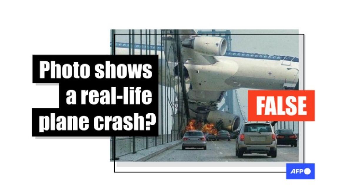 Digital artwork has frequently been passed off on social media as dramatic images of disasters. In one recent example, an image appearing to show an airplane crashing onto a suspension bridge has been shared globally in posts that falsely portrayed it as a genuine incident "caught on camera". It was actually created by a Canada-based digital artist and published online in November 2009.