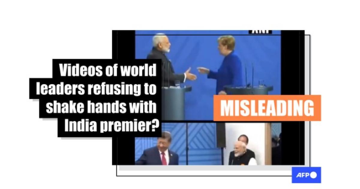 The post -- viewed more than 100,000 times -- included a video collage of two separate clips showing Modi extending his hand but Merkel and Xi appearing to refuse the handshake.