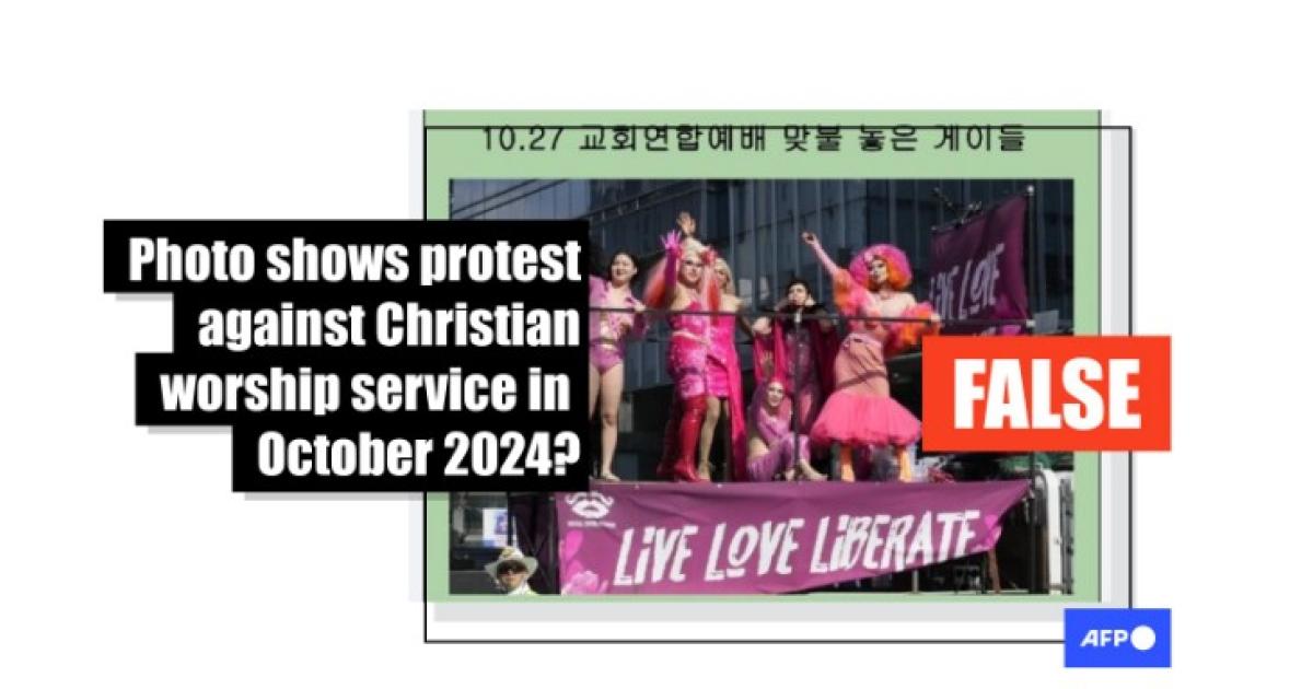 "Gays protesting the October 27 joint worship service," read Korean-language text overlay on the picture shared on Facebook on October 28, 2024.