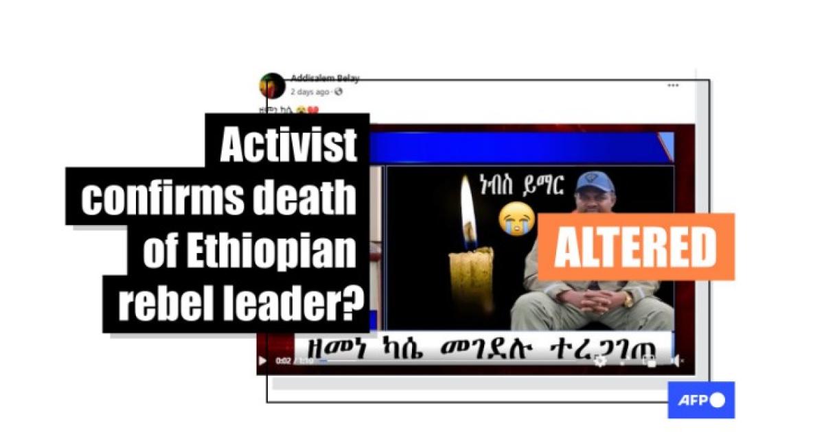 Rumours have recently swirled in Ethiopia claiming that Zemene Kassie, a rebel leader in the Amhara region, has died. A video shared on Facebook claims that an Ethiopian activist confirmed the death. However, this is false: in the footage, the activist is referring to the death of another rebel commander, Wubante Abate, who was killed ten months ago. The section of the original video mentioning Wubante was deliberately omitted and a photo of Zemene was added to give the impression that the activist was talking about the latter.
