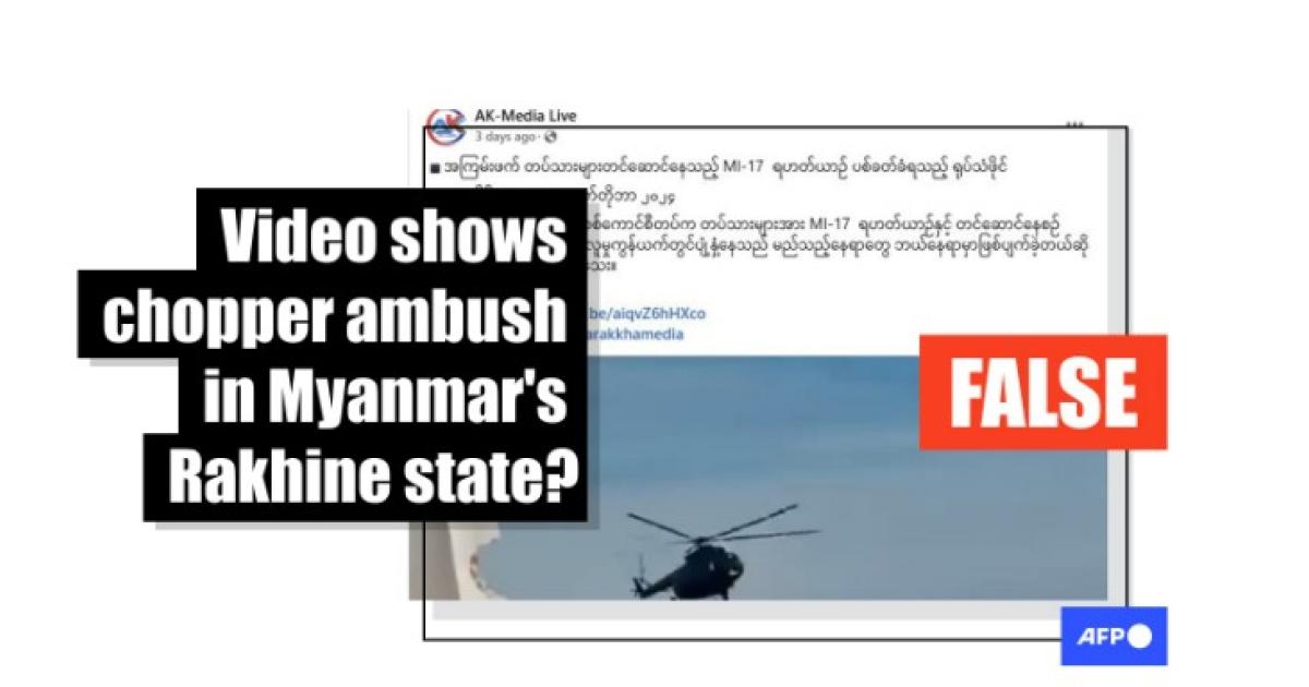 Helicopter attack footage falsely linked to conflict in Myanmar's restive Rakhine state