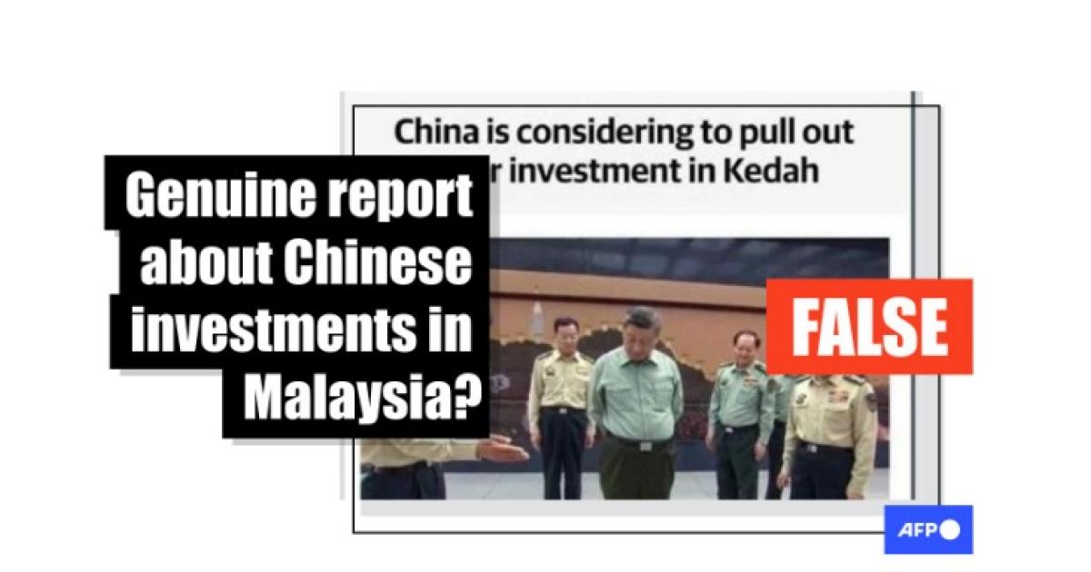 "China is considering to pull out their investment in Kedah", read the purported article's headline, above an image of Chinese President Xi Jinping and officials inspecting military equipment.