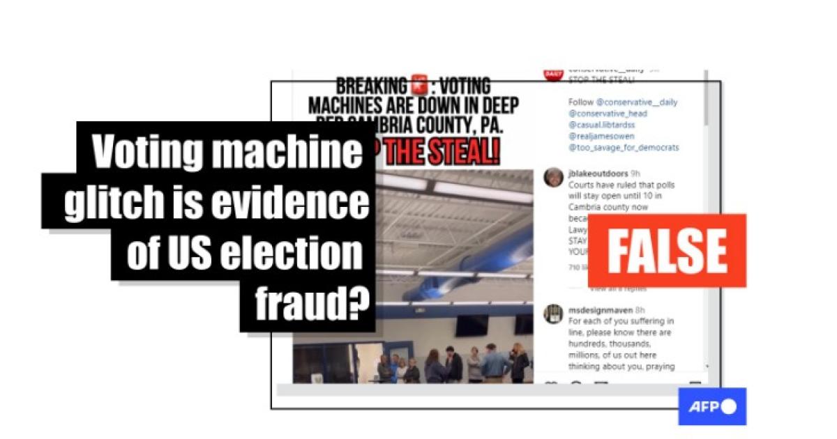 "BREAKING: VOTING MACHINES ARE DOWN IN DEEP RED CAMBRIA COUNTY, PA. STOP THE STEAL!" read a November 5, 2024 Instagram post.