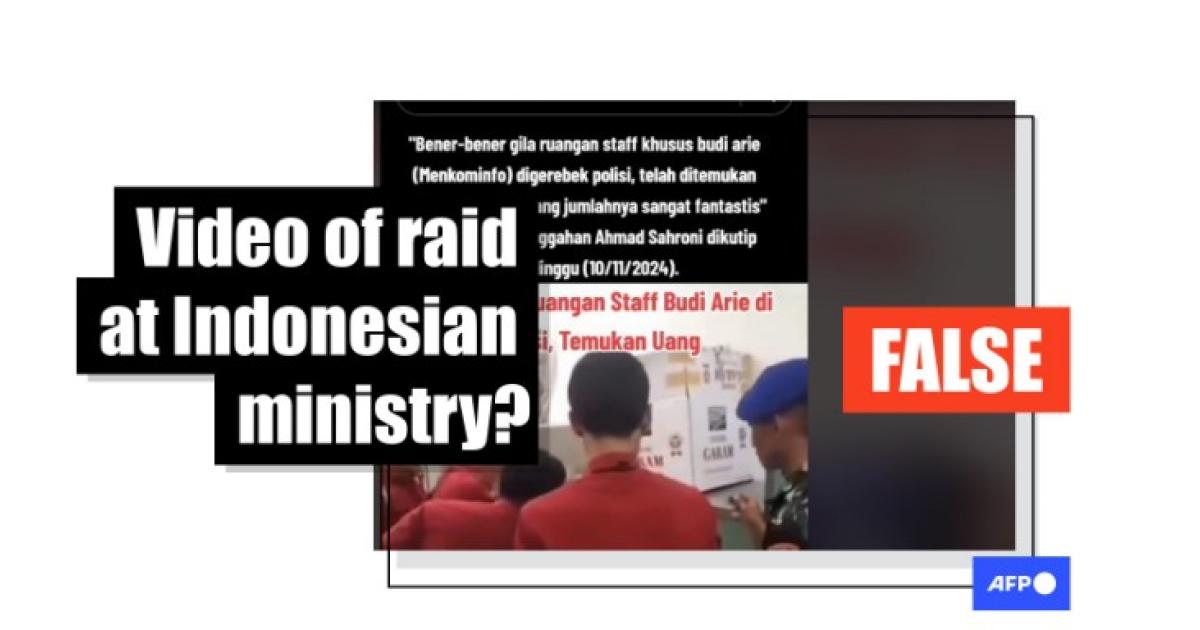 While Indonesian police genuinely searched the communication and digital affairs ministry on November 1, the footage shared on TikTok shows a different operation (archived link).