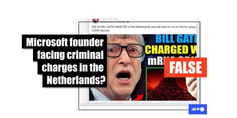 "Listen to the crowd CHEER as @RobertKennedyJr states that Bill Gates will have to go to trial in the Netherlands. 'He's been indicted in the Netherlands for lying to the public about the 'Covid Vaccine,'" says an October 24, 2024 X post from Liz Churchill, a self-described Canadian "conspiracy theorist" who has previously shared misinformation.