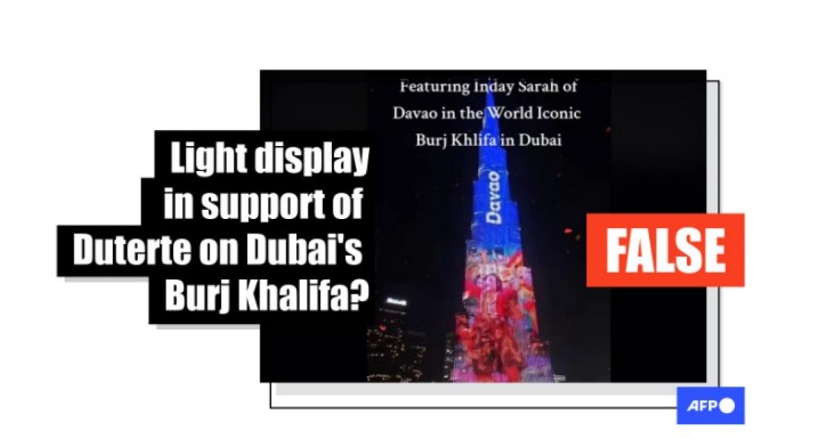 The video, which was viewed more than 130,000 times, shows a light display on the world's tallest building featuring the word "Davao" -- the southern Philippine city that is a stronghold for the Duterte family -- and a figure dressed in red clothing.