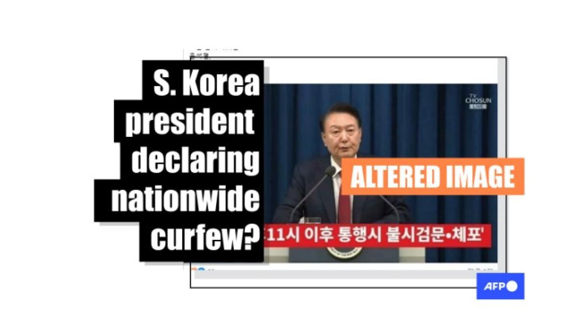The fake screenshot was shared on Facebook minutes after Yoon declared martial law nationwide on December 3 -- the first such measure to be imposed in South Korea in over four decades (archived link).