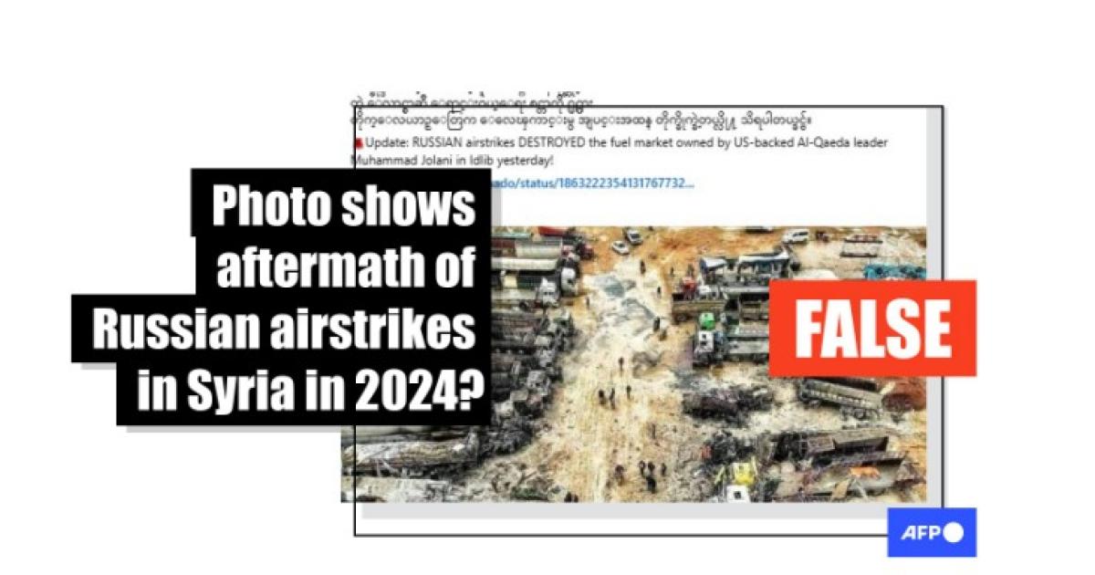 However, the photo was in fact taken in 2021 after Russian strikes destroyed trucks near the Bab al-Hawa border crossing near Turkey.