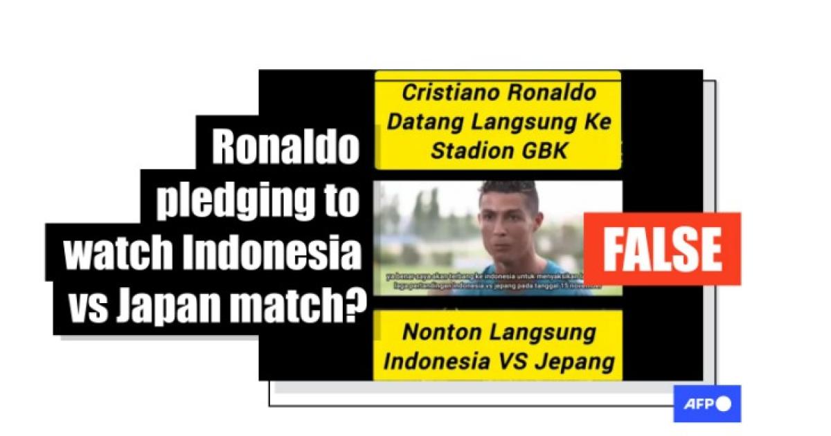AFP found no credible reports of Ronaldo travelling to Indonesia to watch the country play Japan on November 15.