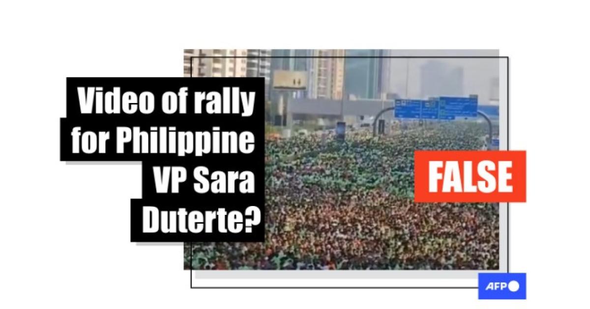 As Philippine Vice President Sara Duterte faced a probe into allegations she plotted to assassinate her estranged ally President Ferdinand Marcos, footage surfaced online alongside false claims it showed massive crowds rallying to support her. The video compilation actually showed competitors at a fun run in Dubai and a Catholic procession in East Timor when Pope Francis visited. The clips were edited to add chants of support for Duterte.