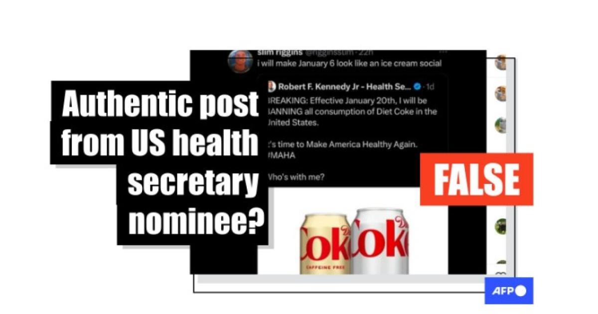 However, Kennedy did not share the announcement about banning Diet Coke -- the screenshots come from a parody X account that has since been suspended (archived here).