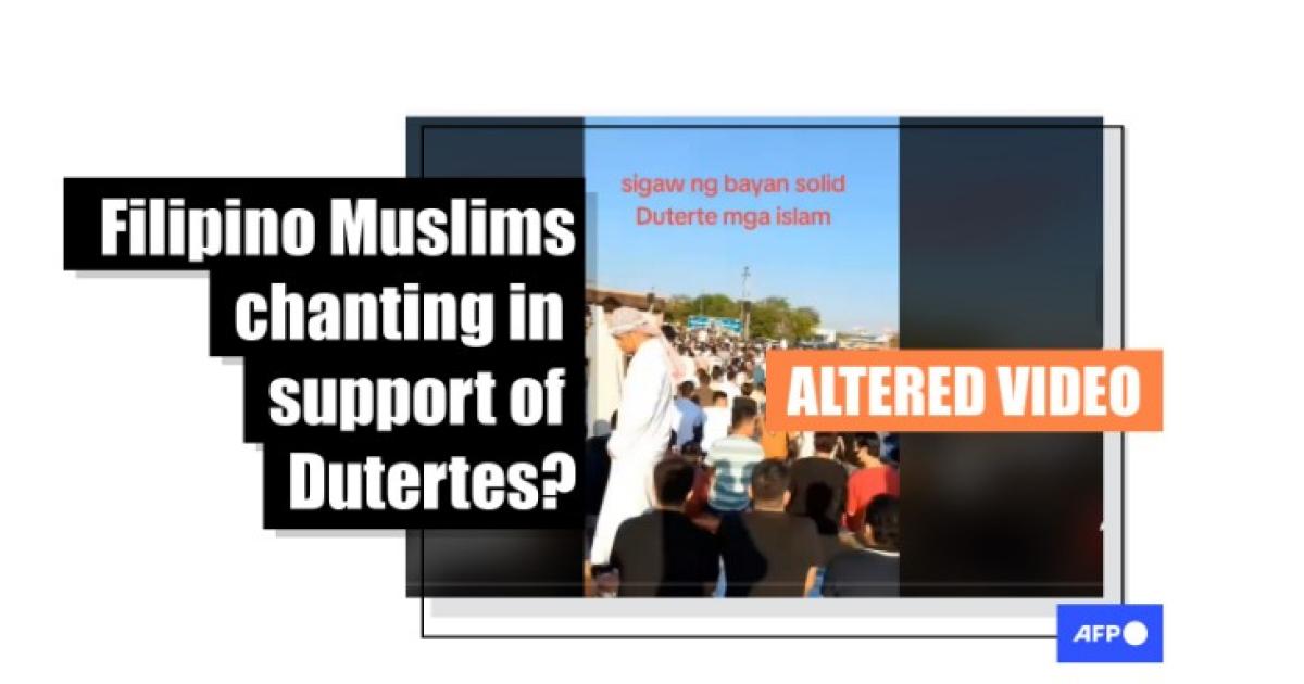 The public facade of unity between the families of President Ferdinand Marcos and his vice president Sara Duterte has shattered as both sides shored up support ahead of the next mid-term and presidential polls. But a video that racked up millions of views on social media, purportedly of a mass show of support for the Duterte clan from Filipino Muslims, is doctored. It shows Muslims celebrating the end of the holy month of Ramadan in April but the audio heard in the clip was taken from a pro-Duterte gathering held overseas.