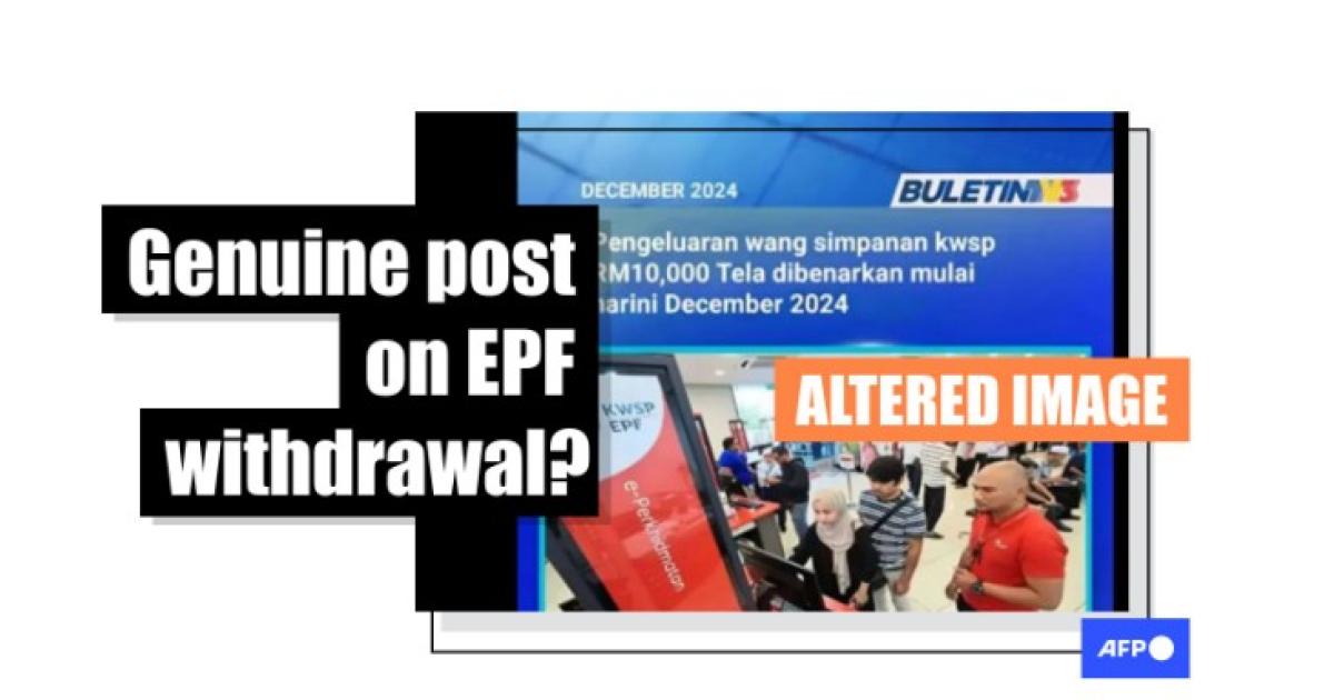 "EPF withdrawal of RM10,000 has been allowed starting today, December 2024," reads the Malay-language text of a purported news graphic by Malaysian broadcaster TV3 shared on TikTok on December 18, 2024.