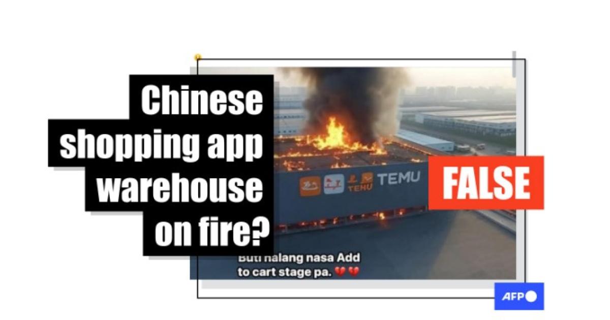 AFP found no official reports of a Temu warehouse catching fire, as of January 7.