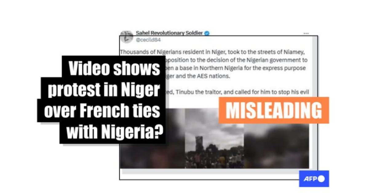 Post falsely claims video shows Niger protest against alleged France-Nigeria partnership