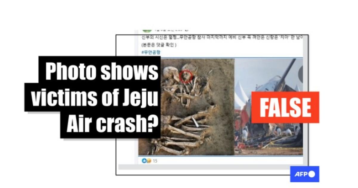 It included a collage showing a pair of skeletons in an apparent embrace -- with one of the skeleton's teeth circled in red -- alongside a picture of the Jeju Air wreck taken by South Korea's Yonhap news agency (archived link).