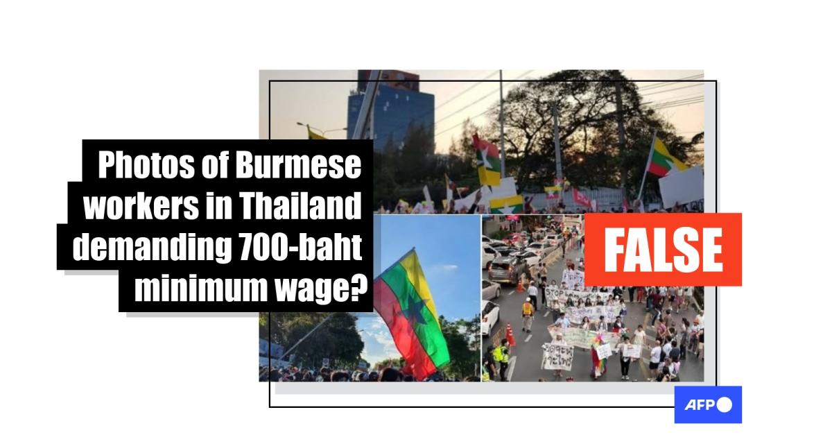 AFP found no credible reports of Burmese migrant workers protesting for a daily minimum wage of 700 baht in Thailand.