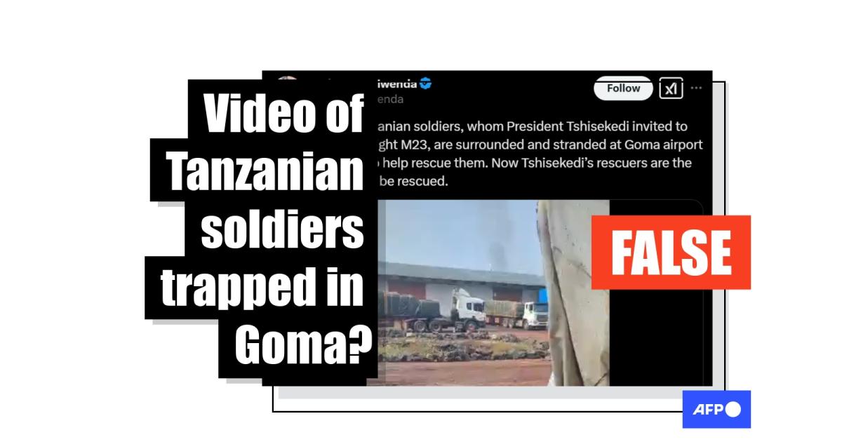 Fighters from the M23 armed group recently captured the city of Goma in the eastern Democratic Republic of Congo during a rapid offensive. A video shared on X is purported to show Tanzanian soldiers surrounded and under fire from the combatants near Goma airport. This is false; the video shows truck drivers appealing to the Tanzanian government to rescue them from the fighting. They were later escorted safely home.