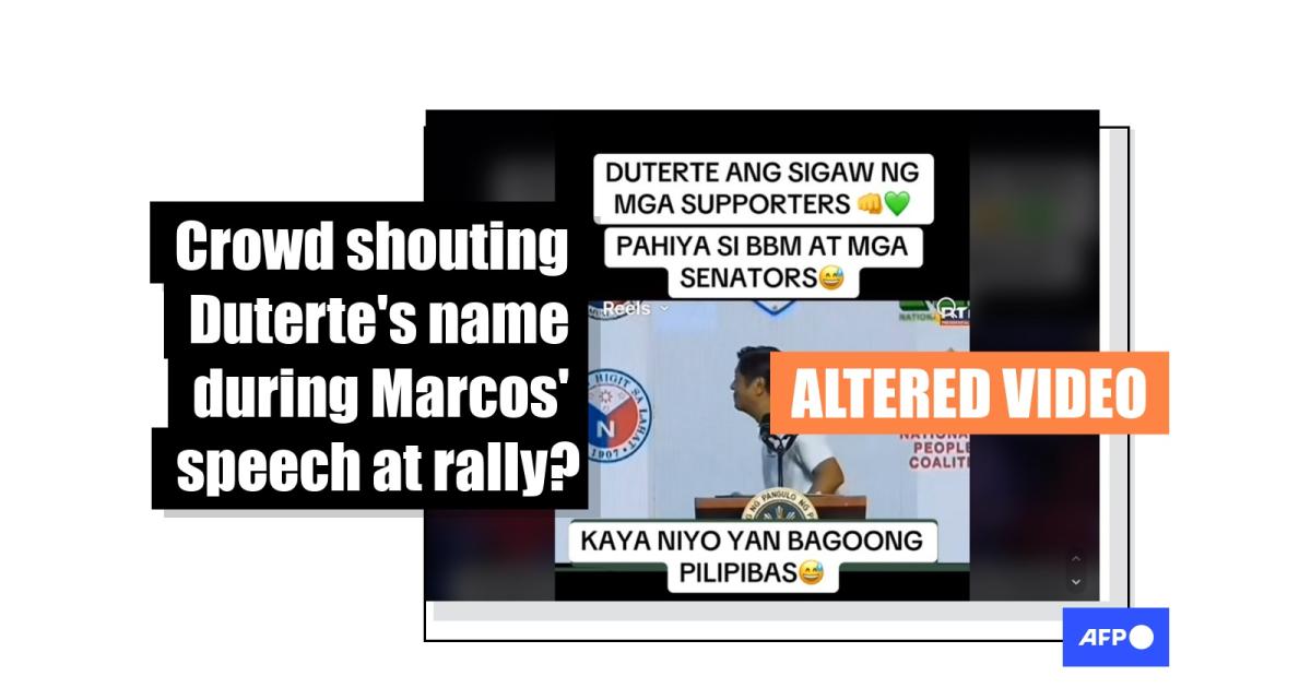 But the video was edited to make it appear the crowd was shouting ex-president Duterte's name.