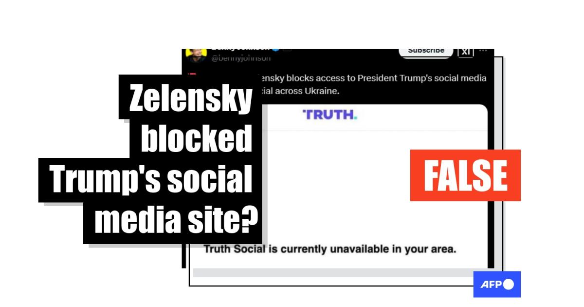 "BREAKING: Zelensky blocks access to President Trump's social media platform Truth Social across Ukraine," says a February 20, 2025 X post from conservative influencer Benny Johnson, who AFP has previously fact-checked.