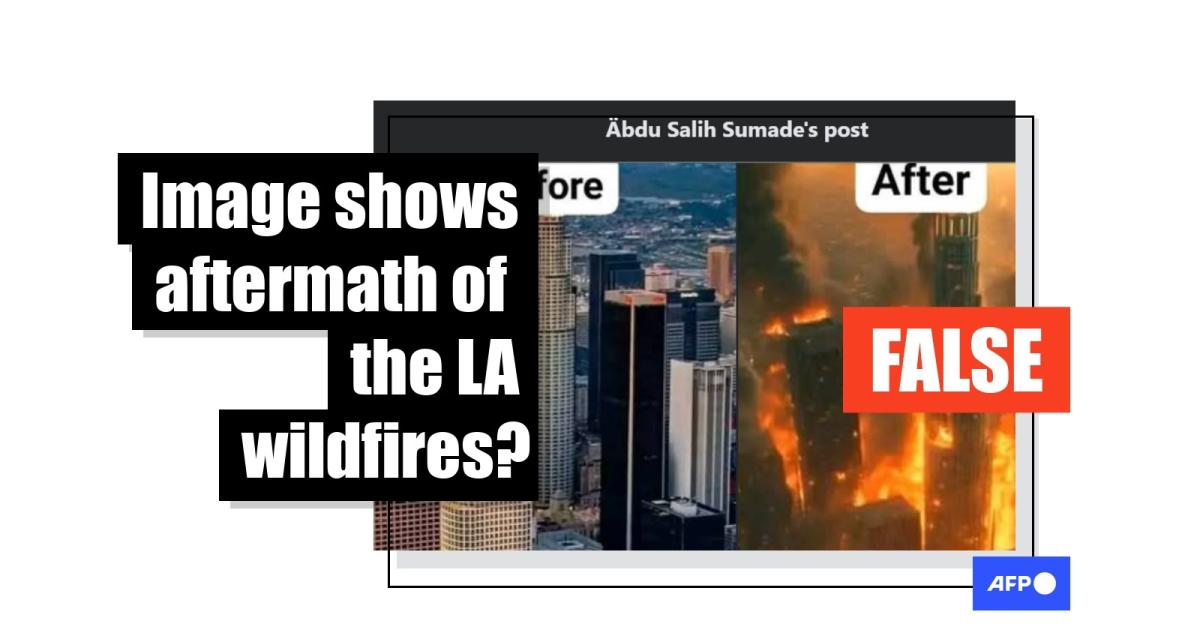 However, the image of burning buildings does not show the aftermath of the Los Angeles wildfires.
