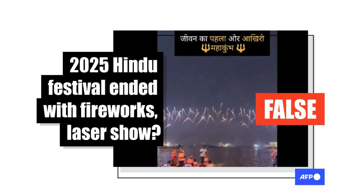 AFP found no such reports about fireworks at the Kumbh Mela's concluding ceremony, although drones lit up the sky on more than one occasion during the event.