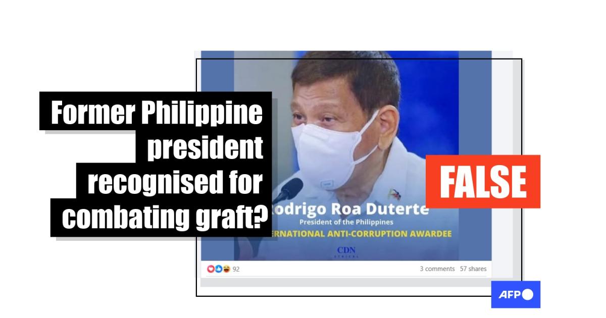 False claims Rodrigo Duterte 'won US anti-corruption award' stem from parody news site