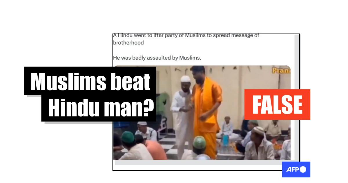 "A Hindu went to iftar party of Muslims to spread message of brotherhood," reads a March 7, 2025 X post, referring to the meal that marks the end of the fasting day during Ramadan. "He was badly assaulted by Muslims."