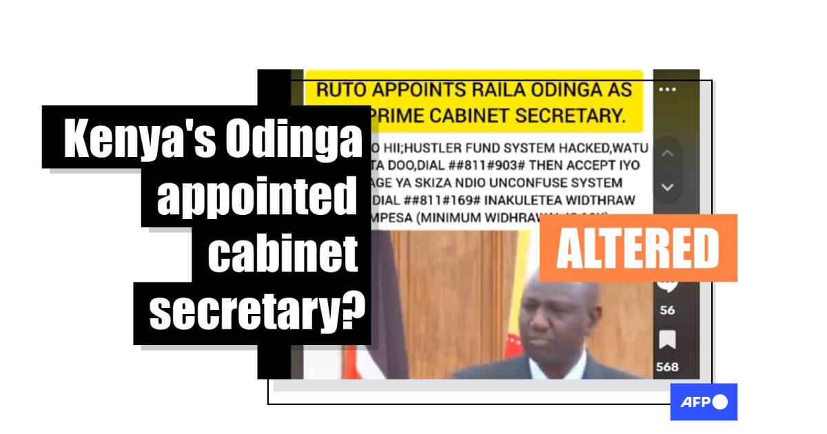 Kenyan opposition politician Raila Odinga and President William Ruto signed a cooperation agreement they said would foster unity in the country and help to solve problems facing ordinary people. Days before the signing, a post shared on TikTok purported to show Ruto announcing the appointment of Odinga as the country’s new prime cabinet secretary. But the footage is doctored; the original video, from 2022, shows Ruto announcing the appointment of Musalia Mudavadi to the position that he currently holds. The clip was spliced with unrelated footage of Odinga to give the impression he was the one being appointed.